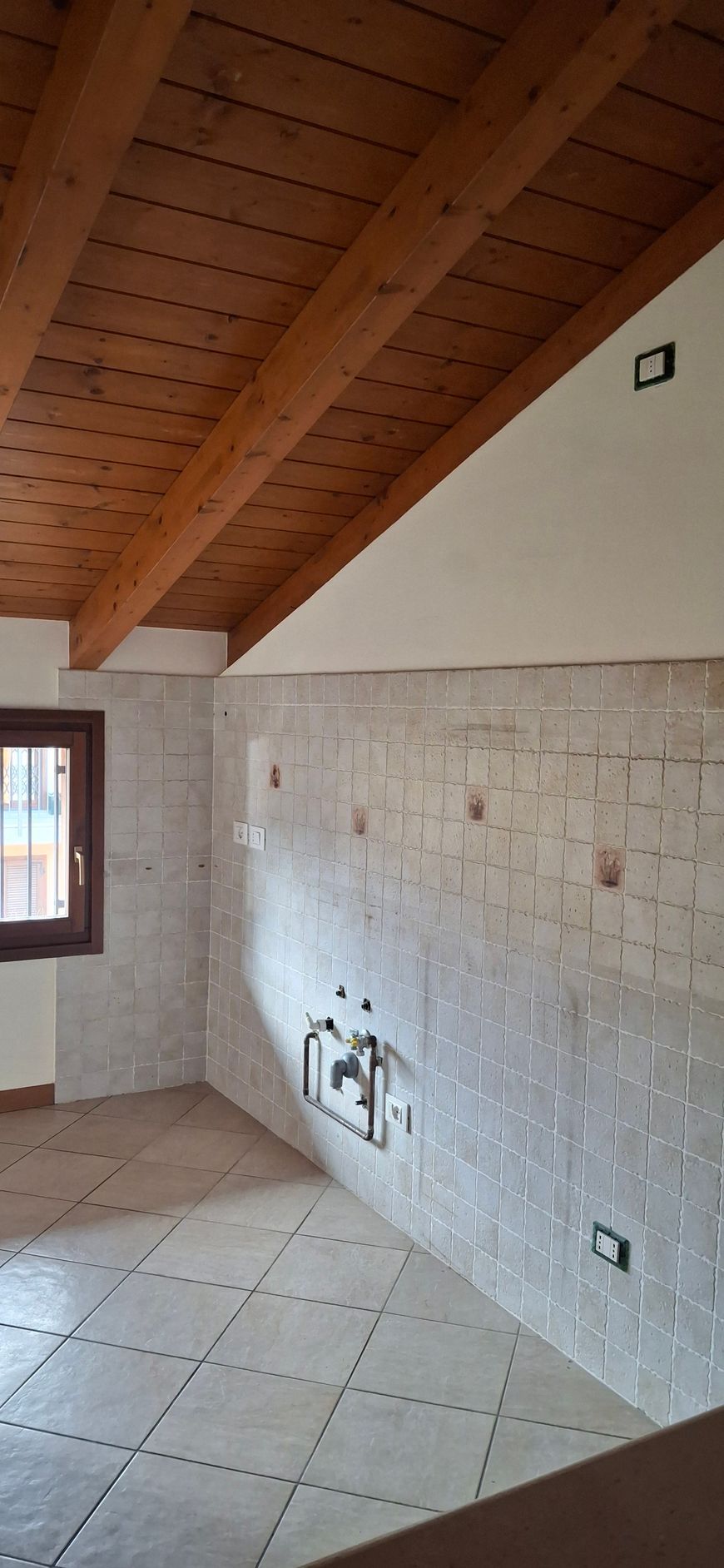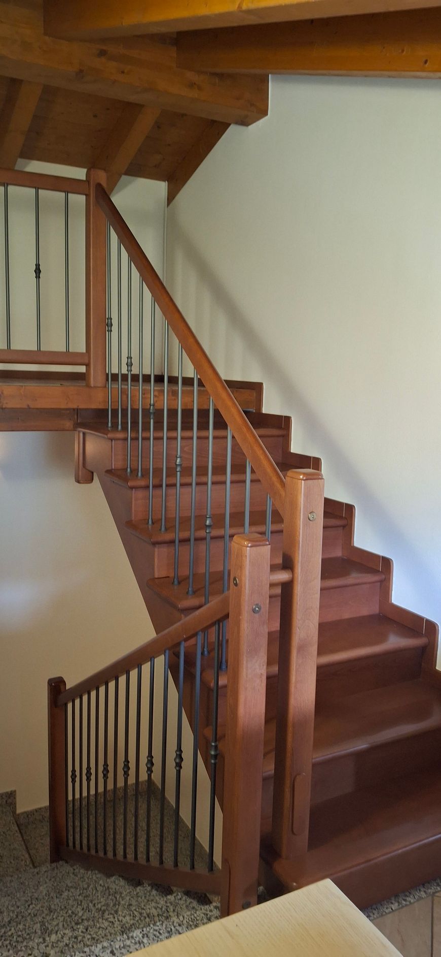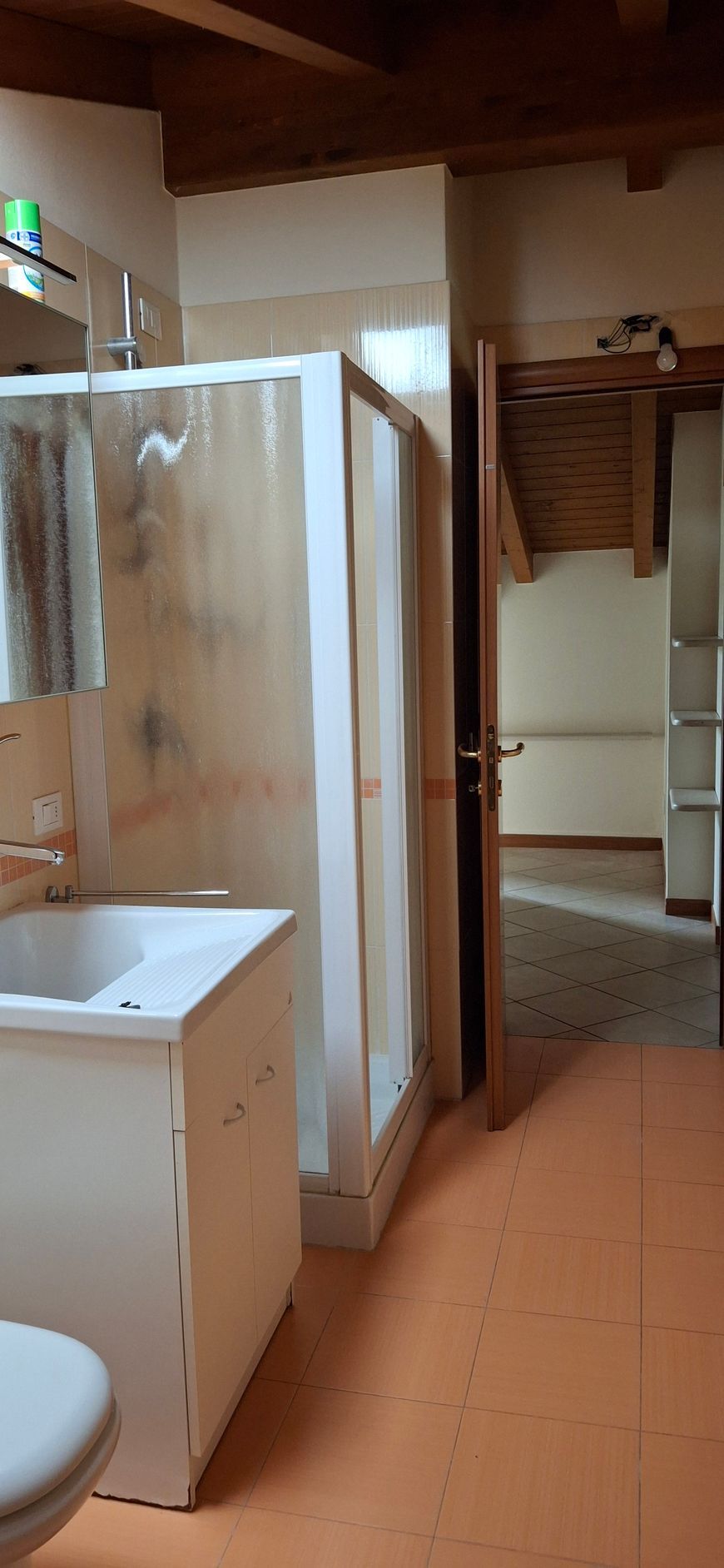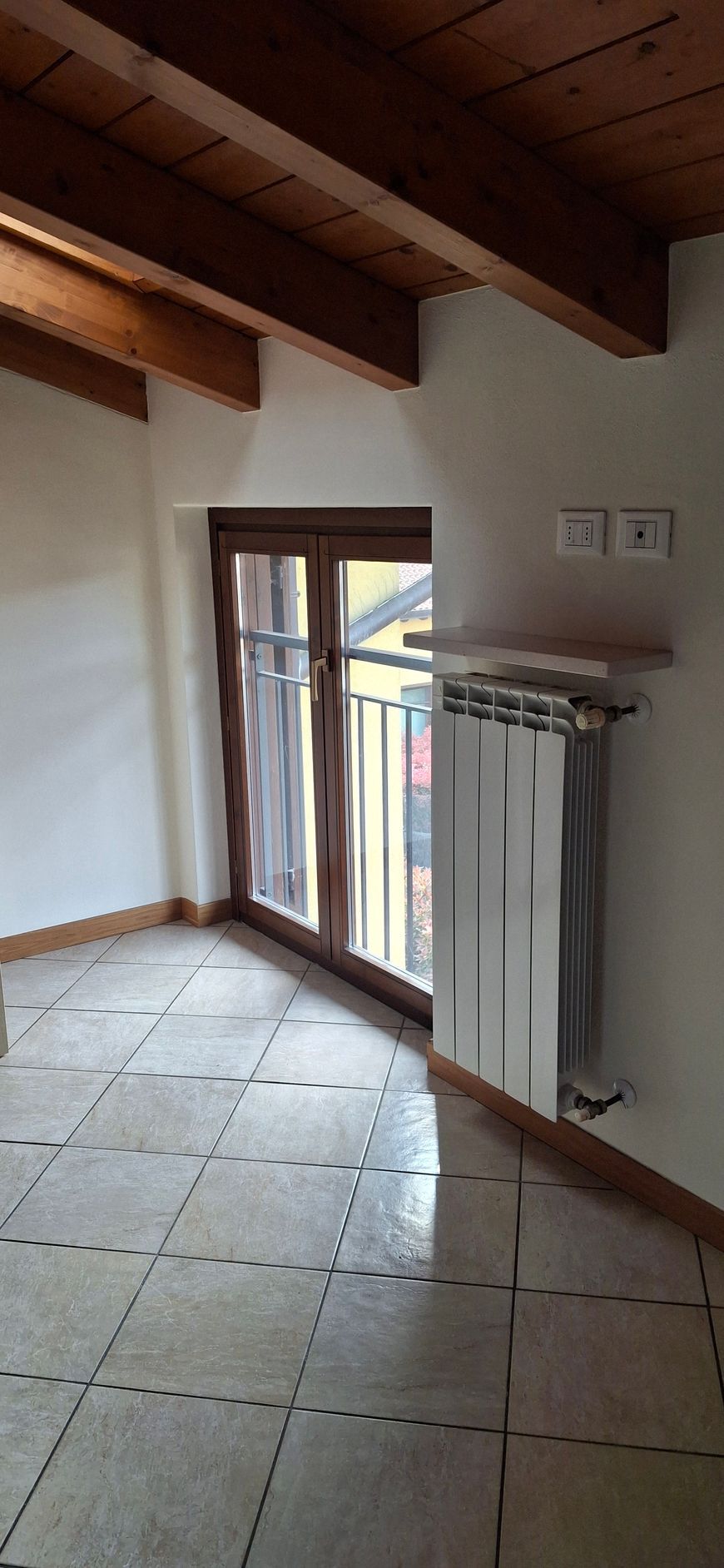 L'appartamento è composto da Piano Secondo Mansardato con travi in legno a vista Soggiorno/Cucina Bagno servito da doccia Balcone con vista sulle montagne _ Piano Primo con pavimento in parquet Camera Matrimoniale con balcone vista, Camera singola con ripostiglietto, bagno con vasca, di pertinenza all'immobile un box doppio di 31 mq.